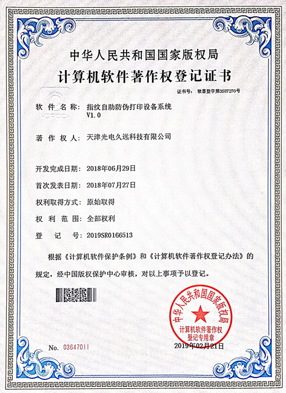 • 指紋自助防偽打印設備系統